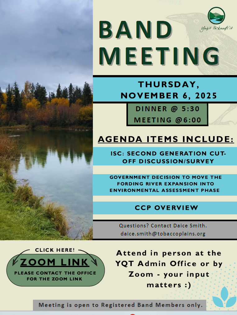 Join us on Thursday, November 6th, 2025 for the Band Meeting (in-person and virtual). Dinner at 5:30 pm, meeting at 6 pm.